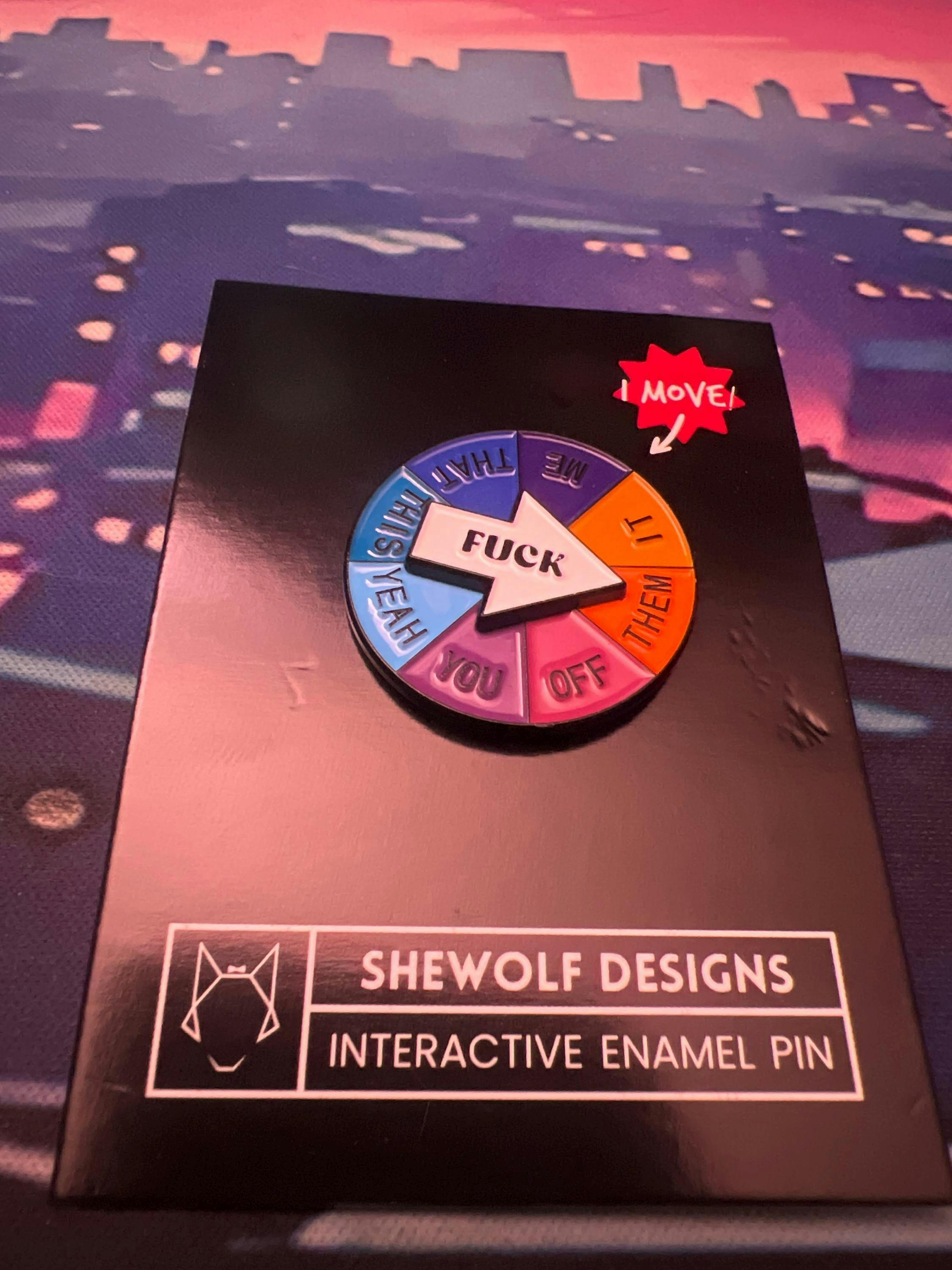 Based on my bestselling sweary sticker, this interactive enamel pin is about to be your new favorite fidget toy!