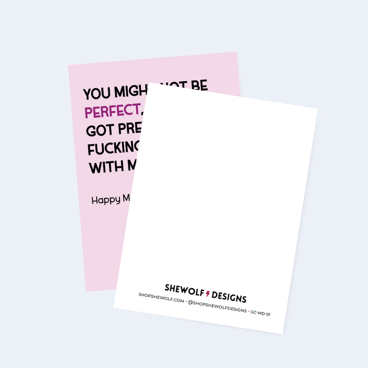 Celebrate Mother’s Day with a bold and humorous greeting card that’s sure to bring a smile to her face. This card is perfect for the mom who loves a little laughter and isn’t afraid to embrace her imperfections. Ideal for showing gratitude in a fun, lighthearted way, it’s a great choice for anyone who appreciates humor in their celebration.